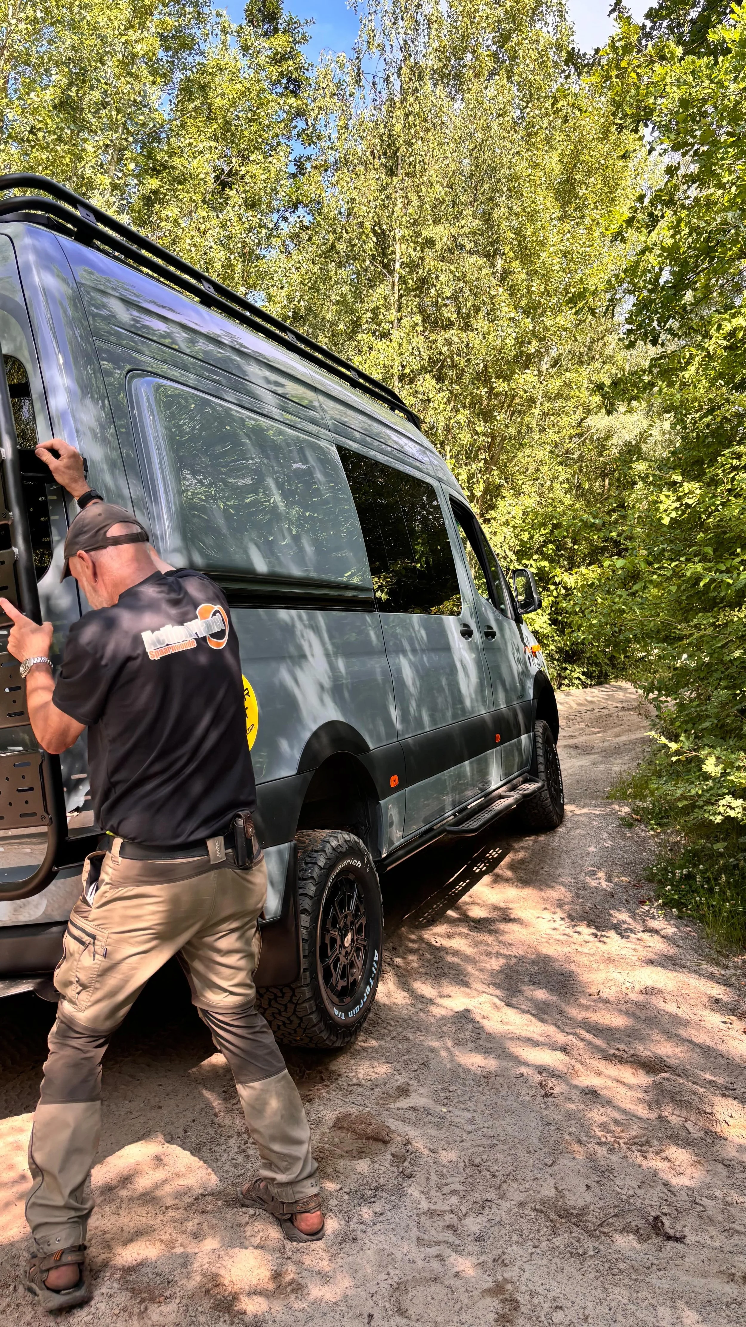 Onze V6 Mercedes Sprinter 4x4's automaat ‘THE REBEL’ is volledig uitgerust en klaar voor jouw volgende avontuur. Inchecken en gaan!