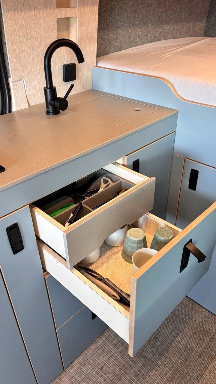 Onze Mercedes Sprinter 4x4's automaat ‘Shierra’ is volledig uitgerust en klaar voor jouw volgende avontuur. Inchecken en gaan!